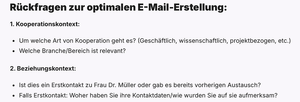 Wenn Sie alle Fragen beantwortet haben, erstellt Nexus Ihnen eine professionelle E-Mail.